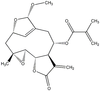 91.23 | C00011989 | [3aS-[3aalpha,4beta,5beta,6alpha(S*),7alpha,7abeta]]-5-(1-Formylethenyl)octahydro-7-hydroxy-6-methyl-3-methylene-6-oxiranyl-2-oxo-4-benzofuranyl ester 2-methyl-2-propenoic acid | ![]() |