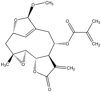 89.47 | C00011991 | [3aS-[3aalpha,4beta,5beta,6alpha(S*),7alpha,7abeta]]-5-(1-Formylethenyl)octahydro-4-hydroxy-6-methyl-3-methylene-6-oxiranyl-2-oxo-7-benzofuranyl ester 2-methyl-2-propenoic acid | ![]() |