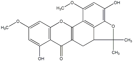 94.92 | C00013479 | Artonin L 5a,6-Dihydro-3,8-dihydroxy-1,10-dimethoxy-5,5-dimethyl-5H,7H-benzofuro[3,4-bc]xanthen-7-one |