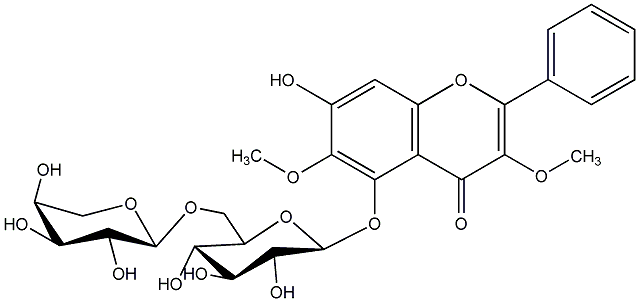 95.56 | C00013734 | 5,7-Dihydroxy-3,6-dimethoxyflavone 5-alpha-L-arabinosyl-(1->6)-glucoside 5-[(6-O-alpha-L-Arabinopyranosyl-beta-D-glucopyranosyl)oxy]-7-hydroxy-3,6-dimethoxy-2-phenyl-4H-1-benzopyran-4-one |
