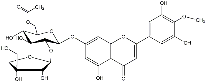 92.71 | C00013715 | Tricetin 4'-methyl ether 7-apiosyl-(1->2)-(6''-acetylglucoside) 7-[(6-O-Acetyl-2-O-D-apio-beta-D-furanosyl-beta-D-glucopyranosyl)oxy]-2-(3,5-dihydroxy-4-methoxyphenyl)-5-hydroxy-4H-1-benzopyran-4-one |