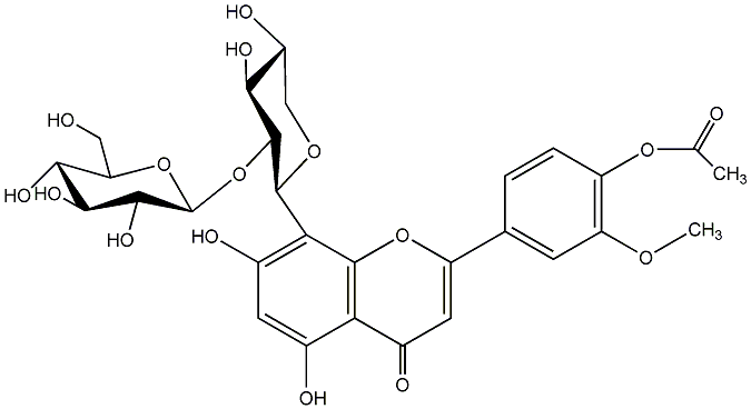 92.71 | C00004191 | Apigenin 5-rhamnosyl-(1->2)-(6''-acetylglucoside) | ![]() |