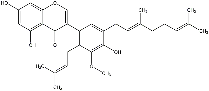 87.01 | C00019249 | Millewanin B 5,7,4'-Trihydroxy-3'-methoxy-5'-((2E)-3,7-dimethyl-2,6-octadienyl)-2'-prenylisoflavone |
