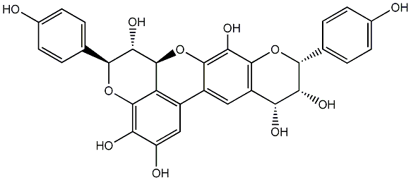 87.50 | C00008938 | 8,9-Dihydro-10-(2,4-dihydroxyphenyl)-8-(3,4-dihydroxyphenyl)-9-hydroxy-10H-pyrano[2,3-h]-ent-epifisetinidol | ![]() |