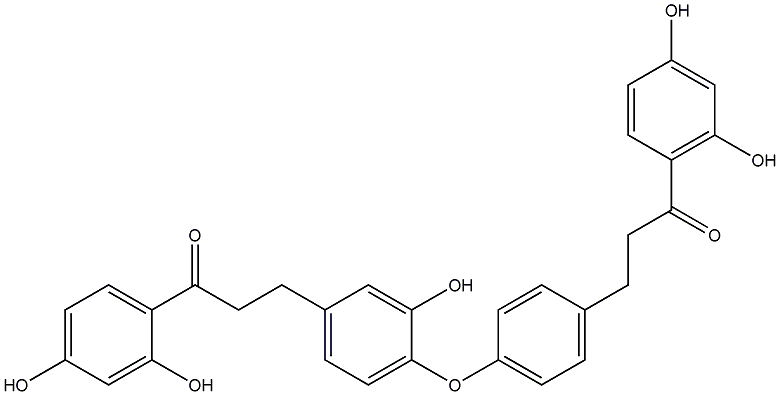 88.61 | C00014518 | Rhuschalcone II (2E)- 3-[4-[2,4-Dihydroxy-5-[(2E)-3-(4-hydroxyphenyl)-1-oxo-2-propenyl]phenoxy]phenyl]-1-(2,4-dihydroxyphenyl)-2-propen-1-one |