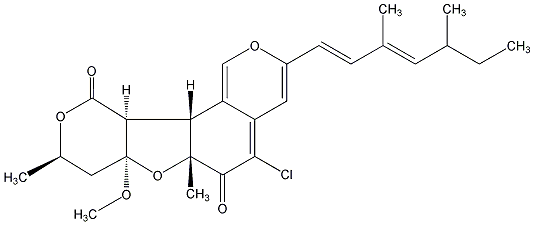 88.33 | C00015345 | Antibiotic RP 1551-4 5-Chloro-3-(3,5-dimethyl-1,3-heptadienyl)-9,9a-dihydro-9-(3-hydroxy-1-oxobutyl)-6a-methyl-6H-furo[2,3-h]-2-benzopyran-6,8(6aH)-dione |