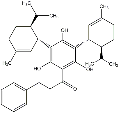 77.11 | C00014612 | (-)-Neolinderatin [1S-[1alpha(1R*,6R*),6beta]]-3-Phenyl-1-[2,4,6-trihydroxy-3,5-bis[3-methyl-6-(1-methylethyl)-2-cyclohexen-1-yl]phenyl]-1-propanone |