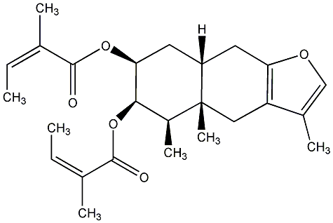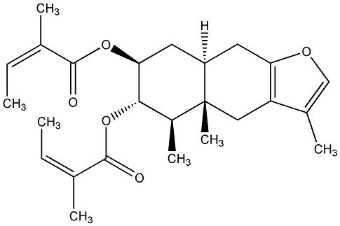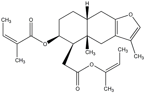 96.77 | C00017341 | [4aS-[4aalpha,5alpha,6alpha(Z),7alpha(Z),8aalpha]]-4,4a,5,6,7,8,8a,9-Octahydro-3,4a,5-trimethylnaphtho[2,3-b]furan-6,7-diyl ester 2-methyl-2-butenoic acid | ![]() |