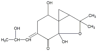 77.50 | C00016459 | Papyracon C Papyracone C [1aR-[1aalpha,3abeta,5E(R*),7a,7aS*]]-Tetrahydro-3a,7-dihydroxy-5-(2-hydroxypropylidene)-2,2-dimethyl-1H,5H-cyclopropa[c]benzofuran-4(3aH)-one |