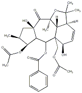83.13 | C00013155 | [3S-(3alpha,5alpha,5aalpha,6alpha,9beta,9aalpha,10S*)]-5,10-bis(Acetyloxy)-5a-[(acetyloxy)methyl]-6-(benzoyloxy)octahydro-9-hydroxy-2,2,9-trimethyl-4H-3,9a-methano-1-benzoxepin-4-one | ![]() |