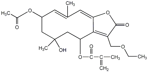76.19 | C00012955 | [3aR-(3aalpha,4alpha,6beta,8alpha,8aalpha,9aalpha)]- 6,8-bis(Acetyloxy)-2,3,3a,4,6,7,8,8a,9,9a-decahydro-5,8a-dimethyl-3-methylene-2-oxonaphtho[2,3-b]furan-4-yl ester 2-methyl-2-propenoic acid | ![]() |