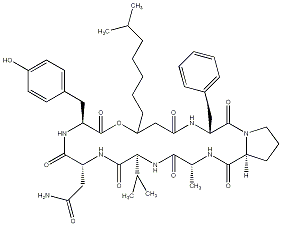 82.39 | C00016154 | YM 47141 N-[N2-[N-[6-Methyl-1,2,3-trioxo-4-[[N-[N-[N-(phenylacetyl)-L-phenylalanyl]-L-threonyl]-L-threonyl]amino]heptyl]-L-leucyl]-L-asparaginyl]-D-alanine pai-lactone |