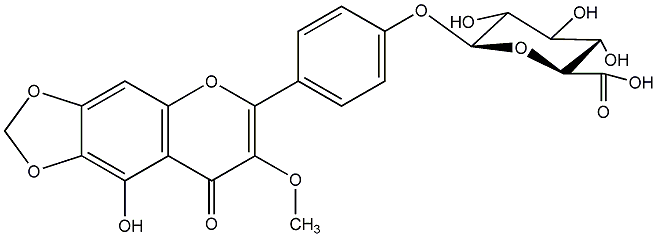 93.06 | C00013998 | 5,4'-Dihydrox-3-methoxy-6,7-methylenedioxyflavone 4'-glucuronide 4-(9-Hydroxy-7-methoxy-8-oxo-8H-1,3-dioxolo[4,5-g][1]benzopyran-6-yl)phenyl beta-D-glucopyranosiduronic acid |