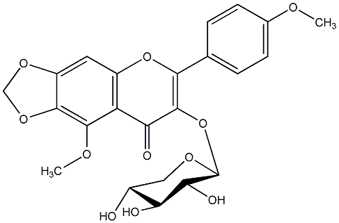 93.06 | C00013999 | Viviparum A 3-Hydroxy-5,4'-dimethoxy-6,7-methylenedioxyflavone 3-xyloside 9-Methoxy-6-(4-methoxyphenyl)-7-(beta-D-xylopyranosyloxy)-8H-1,3-dioxolo[4,5-g][1]benzopyran-8-one |