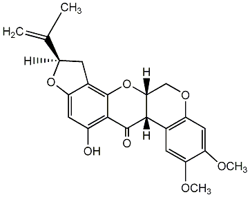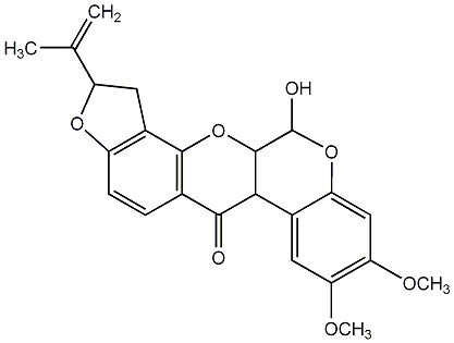 90.91 | C00019225 | 11,5'-Dihydroxy-2,3,4'-trimethoxy-6',6'-dimethyl-4',5'-dihydropyrano[2',3':9,8]-6a,12a-didehydrorotenone | ![]() |