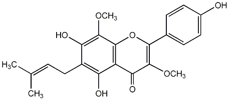 90.16 | C00005011 | 5,7,4'-Trihydroxy-3,8-dimethoxy-6-prenylflavone 6-Prenylherbacetin 3,8-dimethyl ether 5,7-Dihydroxy-2-(4-hydroxyphenyl)-3,8-dimethoxy-6-(3-methyl-2-butenyl)-4H-1-benzopyran-4-one |