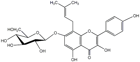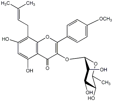 88.31 | C00005818 | Icariside II Baohuoside 1 3-[(6-Deoxy-alpha-L-mannopyranosyl)oxy]-5,7-dihydroxy-2-(4-methoxyphenyl)-8-(3-methyl-2-butenyl)-4H-1-benzopyran-4-one |