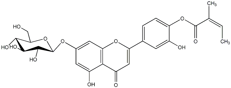 92.21 | C00013668 | Luteolin 7-glucoside-4'-(Z-2-methyl-2-butenoate) 7-(beta-D-Glucopyranosyloxy)-5-hydroxy-2-[3-hydroxy-4-[[(2Z)-2-methyl-1-oxo-2-butenyl]oxy]phenyl]-4H-1-benzopyran-4-one |