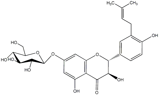 89.87 | C00014417 | 3,5,7,3',4'-Pentahydroxy-6-prenylflavanone 7-glucoside | ![]() |