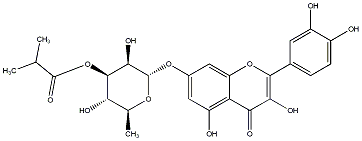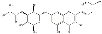 89.02 | C00013942 | Quercetagetin 7-(6''-isobutyrylglucoside) 6-Hydroxyquercetin 7-(6''-isobutyrylglucoside) 2-(3,4-Dihydroxyphenyl)-3,5,6-trihydroxy-7-[[6-O-(2-methyl-1-oxopropyl)-beta-D-glucopyranosyl]oxy]-4H-1-benzopyran-4-one |