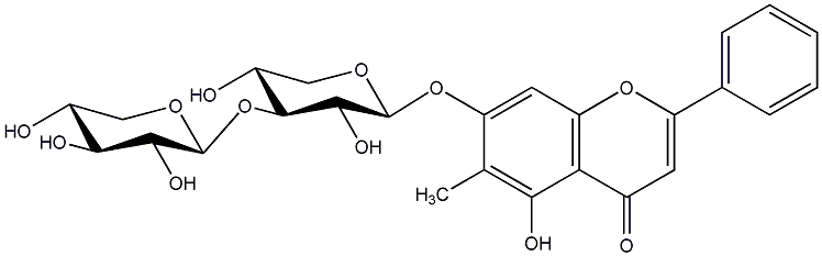 90.12 | C00013728 | 5,7-Dihydroxy-6-C-methylflavone 7-xylosyl-(1->3)-xyloside | ![]() |