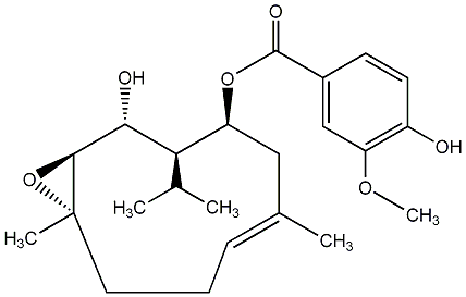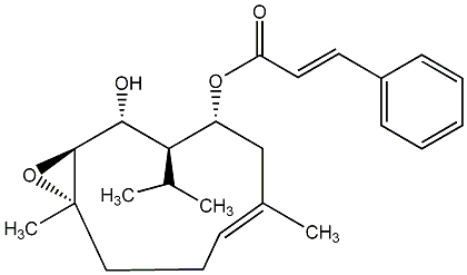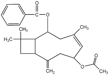 86.21 | C00012475 | [1R-(1R*,2S*,6S*,9S*)]-4,11,11-Trimethyl-8-methylenebicyclo[7.2.0]undec-4-ene-2,6-diol 6-acetate 2-benzoate | ![]() |