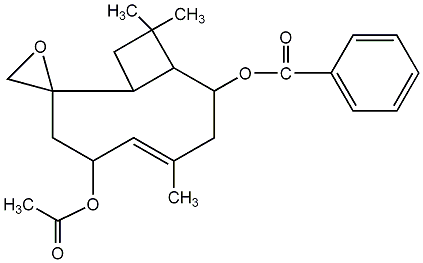 86.21 | C00012476 | 6,10,10-Trimethylspiro[bicyclo[7.2.0]undec-5-ene-2,2'-oxirane]-4,8-diol 4-acetate 8-benzoate | ![]() |