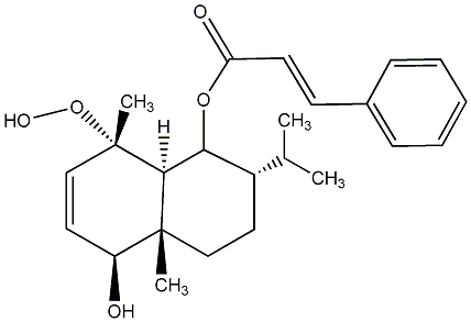 91.80 | C00012824 | [1R-[1alpha(E),2alpha,4abeta,5beta,7alpha]]-1,2,3,4,4a,5,6,7-Octahydro-7-hydroperoxy-5-hydroxy-4a,8-dimethyl-2-(1-methylethyl)-1-naphthalenyl ester 3-phenyl-2-propenoic acid | ![]() |