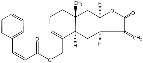 86.67 | C00012926 | ([3aR-[3aalpha,4aalpha,5(Z),8abeta,9aalpha]]-2,3,3a,4,4a,7,8,8a,9,9a-Decahydro-8a-methyl-3-methylene-2-oxonaphtho[2,3-b]furan-5-yl)methyl ester 3-phenyl-2-propenoic acid | ![]() |