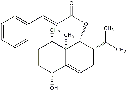 88.14 | C00012776 | [1R-(1alpha,2alpha,4aalpha,5alpha,8abeta)]-1,2,3,4,4a,5,6,8a-Octahydro-5-hydroxy-4a,8-dimethyl-2-(1-methylethyl)-1-naphthalenyl ester 3-phenyl-2-propenoic acid | ![]() |