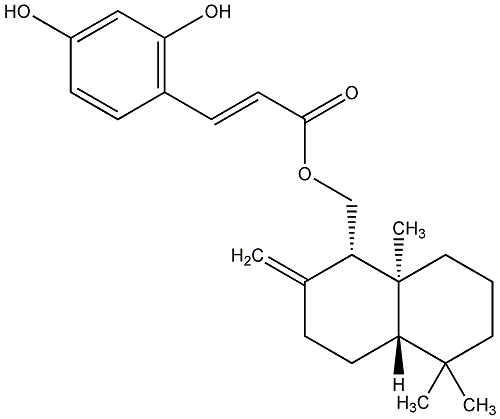 91.67 | C00012825 | [1R-[1alpha(E),2alpha,4abeta,5beta]]-1,2,3,4,4a,5,6,7-Octahydro-5-hydroxy-4a,8-dimethyl-2-(1-methylethyl)-7-oxo-1-naphthalenyl ester 3-phenyl-2-propenoic acid | ![]() |