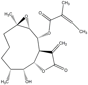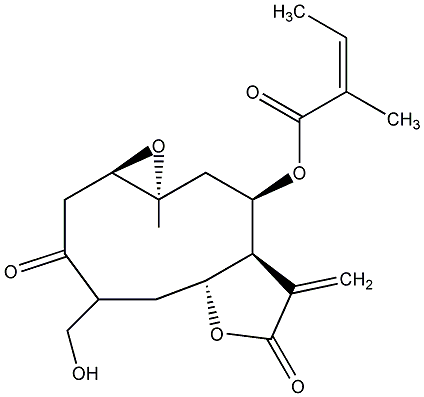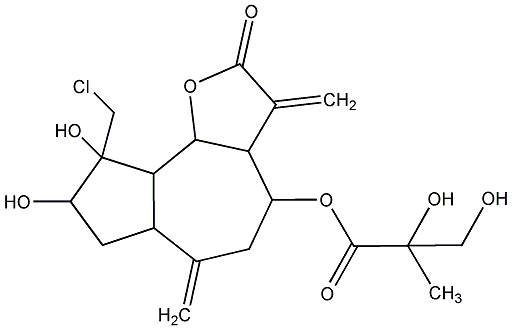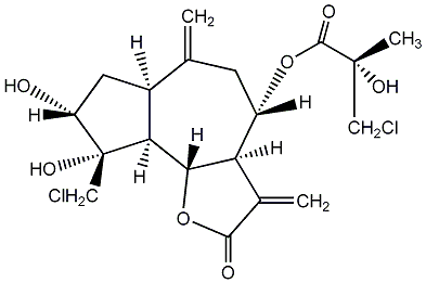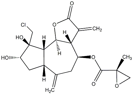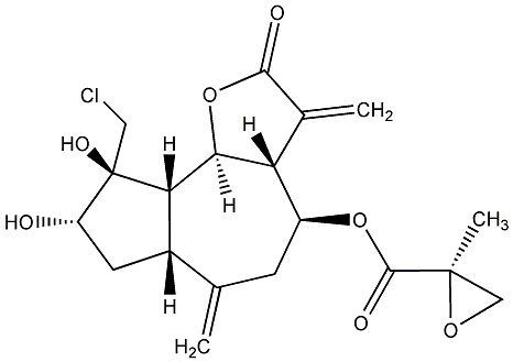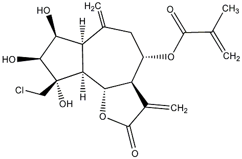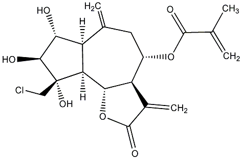 92.59 | C00011998 | [3aR-[3aalpha,4beta(Z),6alpha,7beta,7abeta]]-6-Ethenyloctahydro-6-methyl-a,3-bis(methylene)-4-[(2-methyl-1-oxo-2-butenyl)oxy]-2-oxo-7-benzofuranacetic acid | ![]() |