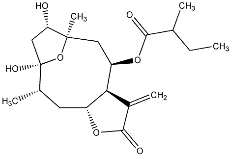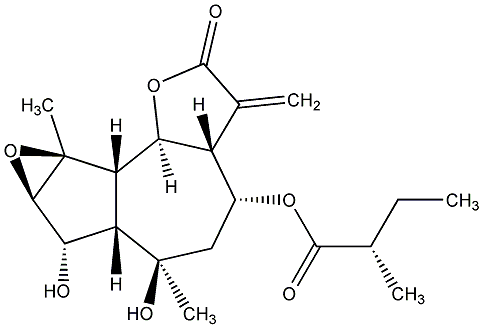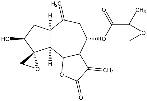 94.44 | C00020702 | [3aR-[3aalpha,4beta(S*),6alpha,6aalpha,7beta,7abeta,8abeta,8balpha,8cbeta]]-Dodecahydro-6,7-dihydroxy-6,8a-dimethyl-3-methylene-2-oxooxireno[2,3]azuleno[4,5-b]furan-4-yl ester 2-methylbutanoic acid | ![]() |