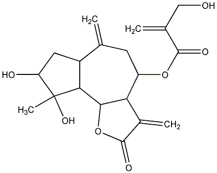 94.44 | C00011779 | [3aR-[3aR*,4R*(S*),6E,8S*,10E,11aR*]]-2,3,3a,4,5,8,9,11a-Octahydro-8-hydroxy-6,10-dimethyl-3-methylene-2-oxocyclodeca[b]furan-4-yl ester 3-hydroxy-2-methylene-butanoic acid | ![]() |