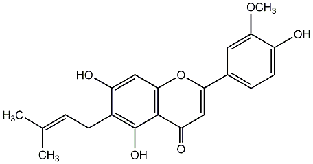 89.47 | C00004036 | Cannflavin B 6-Prenylchrysoeriol Canniflavone Canniflavone 1 5,7-Dihydroxy-2-(4-hydroxy-3-methoxyphenyl)-6-(3-methyl-2-butenyl)-4H-1-benzopyran-4-one |