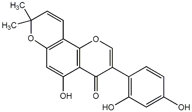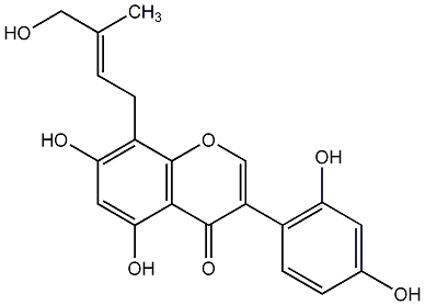 89.47 | C00009892 | Hydroxywighteone 5,7,4'-Trihydroxy-6-(3-hydroxymethyl-2-butenyl)isoflavone Glabrisoflavone Isogancaonin C |