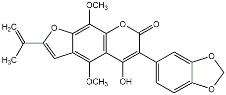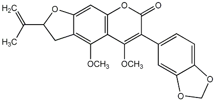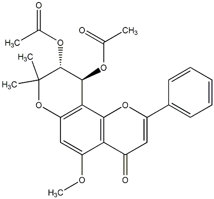 88.41 | C00013429 | (9R,10S)-rel-(-)-9,10-bis(Acetyloxy)-9,10-dihydro-5-methoxy-8,8-dimethyl-2-phenyl-4H,8H-benzo[1,2-b:3,4-b']dipyran-4-one | ![]() |