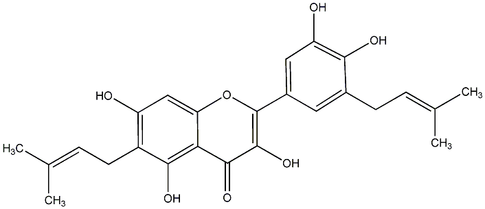 88.24 | C00013522 | Broussonol E Papyriflavonol A 2-[3,4-Dihydroxy-5-(3-methyl-2-butenyl)phenyl]-3,5,7-trihydroxy-6-(3-methyl-2-butenyl)-4H-1-benzopyran-4-one |