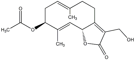 86.67 | C00011826 | [3aS-(3aR*,6Z,10Z,11aS*)]-10-[(Acetyloxy)methyl]-3a,4,5,8,9,11a-hexahydro-6-(hydroxymethyl)-3-methylenecyclodeca[b]furan-2(3H)-one | ![]() |
