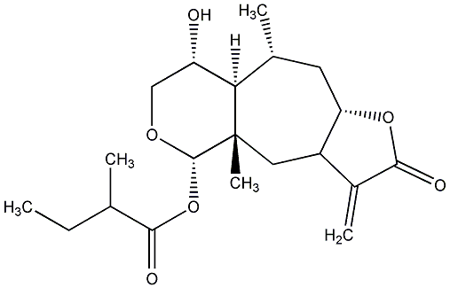 90.57 | C00011808 | 2,3,3a,4,5,8,9,11a-Octahydro-5,9-dihydroxy-6,10-dimethyl-3-methylene-2-oxocyclodeca[b]furan-4-yl ester 2-methyl-butanoic acid | ![]() |