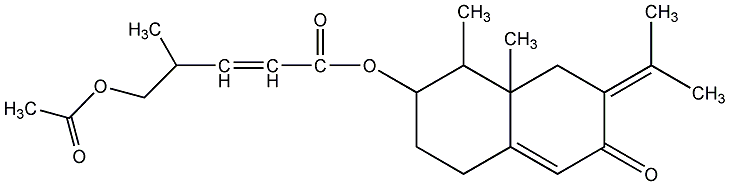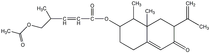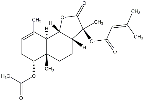 83.33 | C00011987 | [3aS-[3aalpha,4beta,5beta,6alpha,7alpha(Z),7abeta]]-4-(Acetyloxy)-6-ethenyl-5-(1-formylethenyl)octahydro-6-methyl-3-methylene-2-oxo-7-benzofuranyl ester 2-methyl-2-butenoic acid | ![]() |