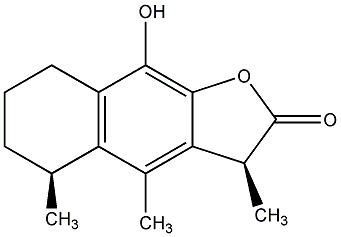 81.58 | C00003364 | Santonin Semenen (-)-alpha-Santonin (-)-Santonin a-Santonin [3S-(3alpha,3aalpha,5abeta,9bbeta)]-3a,5,5a,9b-Tetrahydro-3,5a,9-trimethylnaphtho[1,2-b]furan-2,8(3H,4H)-dione |