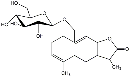 84.13 | C00012385 | [3aR-(3aR*,5E,9Z,11aR*)]- 2,3,3a,4,7,8,11,11a-Octahydro-6-methyl-3-methylene-2-oxo-, beta-D-glucopyranosyl ester cyclodeca[b]furan-10-carboxylic acid | ![]() |