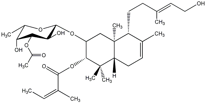 83.70 | C00023194 | 3alpha-Angeloyloxy-2beta,15-dihydroxy-ent-labda-7,13E-dien-2-O-beta-[fucopyranoside-3'-O-acetate] | ![]() |