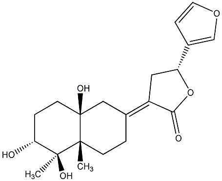 96.49 | C00022560 | 3alpha,4beta,10beta-Trihydroxy-15,16-epoxy-cis-clerodane-8(17),13(16),14-trien-20,12-olide | ![]() |