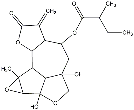 90.16 | C00020702 | [3aR-[3aalpha,4beta(S*),6alpha,6aalpha,7beta,7abeta,8abeta,8balpha,8cbeta]]-Dodecahydro-6,7-dihydroxy-6,8a-dimethyl-3-methylene-2-oxooxireno[2,3]azuleno[4,5-b]furan-4-yl ester 2-methylbutanoic acid | ![]() |