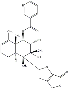 84.29 | C00012795 | [1R-(1alpha,2beta,4abeta,5beta,6beta,8aalpha)]-Decahydro-8a-methyl-4-methylene-6-(1-methylethyl)-1,2,5-naphthalenetriol 1,2-diacetate 5-benzoate | ![]() |