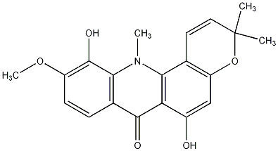 89.80 | C00024233 | 6,11-Dihydroxy-10-methoxy-3,3,12-trimethyl-3,12-dihydro-7H-pyrano[2,3-c]acridin-7-one | ![]() |