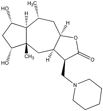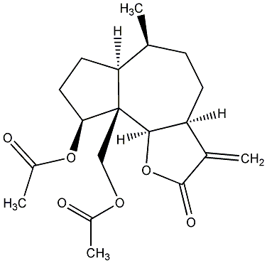 84.91 | C00011779 | [3aR-[3aR*,4R*(S*),6E,8S*,10E,11aR*]]-2,3,3a,4,5,8,9,11a-Octahydro-8-hydroxy-6,10-dimethyl-3-methylene-2-oxocyclodeca[b]furan-4-yl ester 3-hydroxy-2-methylene-butanoic acid | ![]() |
