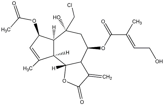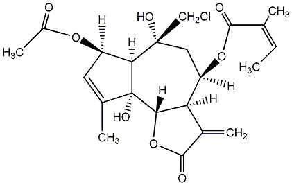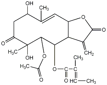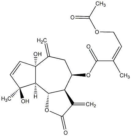 85.71 | C00012396 | (4R*,6Z,8R*,10S*,11E)-8-(Acetyloxy)-3-[(acetyloxy)methyl]-2,4,5,8,9,10-hexahydro-10-hydroxy-6,10-dimethyl-2-oxocyclodeca[b]furan-4-yl ester 2-methyl-2-propenoic acid | ![]() |